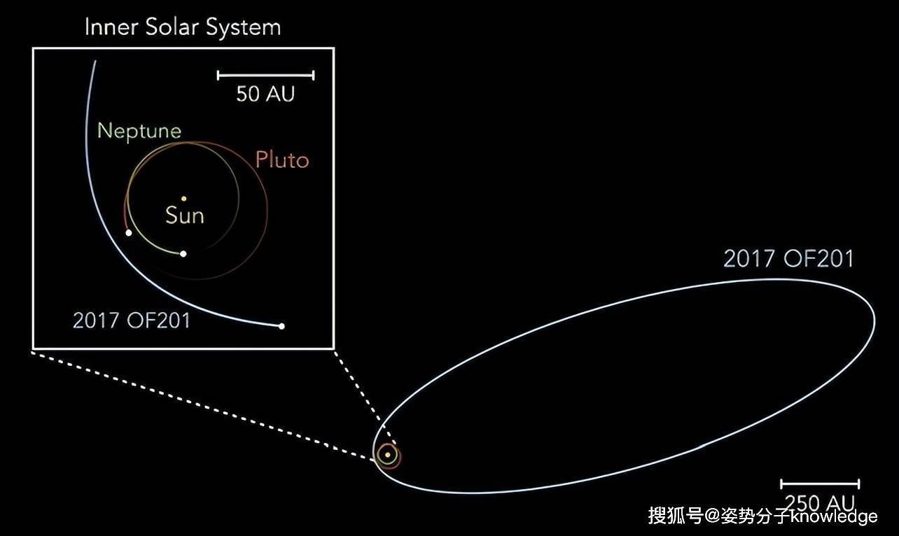 2017 OF201最初被发现时,距离太阳90.5个天文单位,是冥王星轨道距离的两倍多。