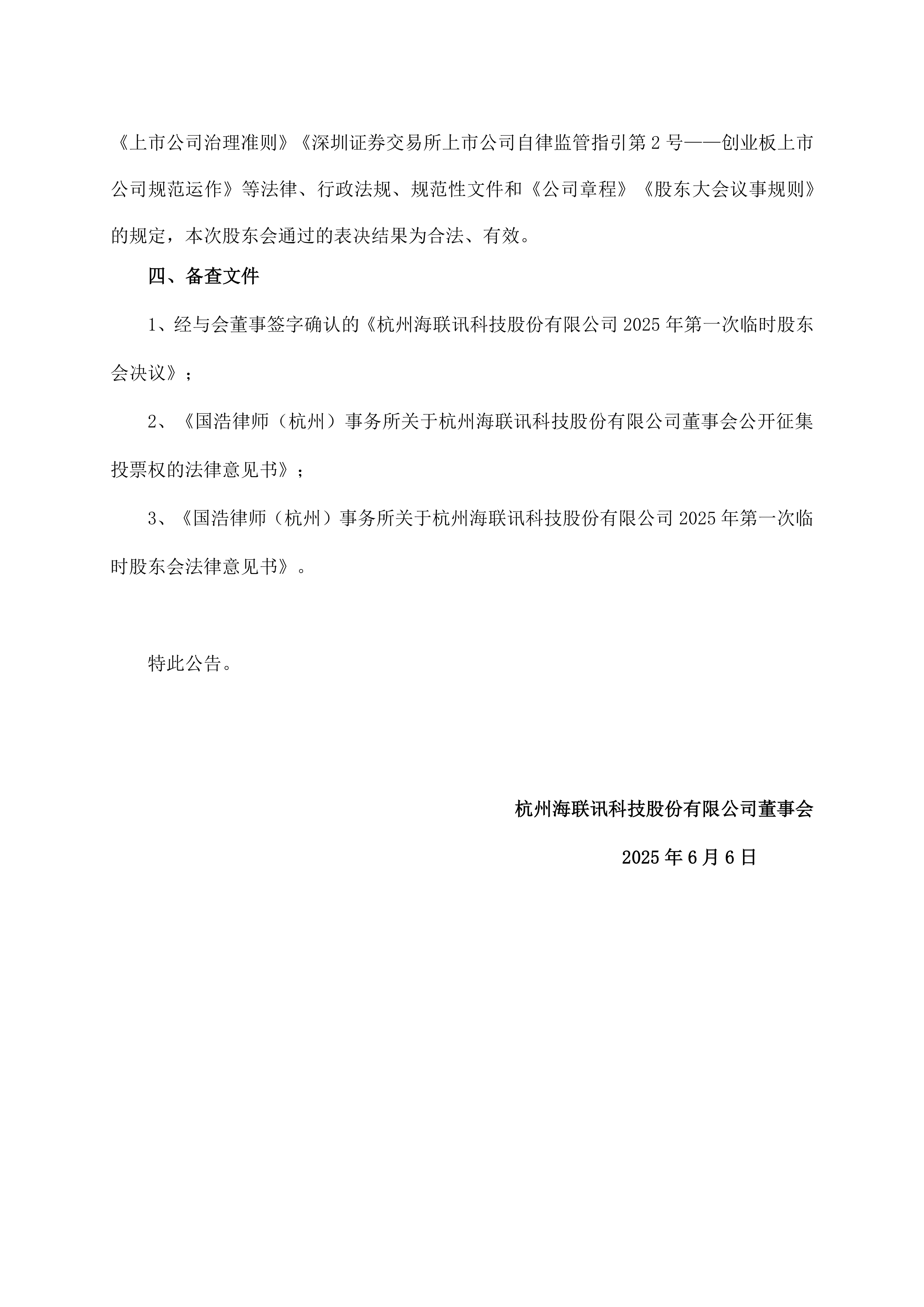 深沪京-公告-海联讯-2025年第一次临时股东会决议公告