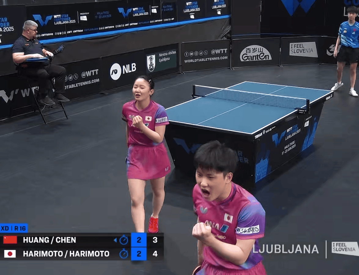 赢球时刻,张本美和露出了开心的大笑,甚至还有滑翔拥抱的庆祝动作,张本智和则是握拳大吼,反观中国两人组则是无奈的叹气,陈熠沮丧低头,黄友政也是摇头离开,备受期待的混双一轮游出局,对他们还是有点太残酷了,只能当做积累经验的一部分了。