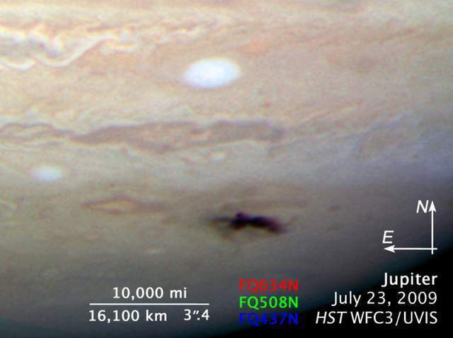 1994年,彗星舒梅克-列维9号彗星,以每秒60公里的速度撞击木星,释放20亿颗原子弹的能量,留下地球大小的疤痕。