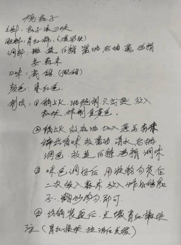 原本只是怀着试一试的心态,没想到当天晚上她就收到系统回复。第二天,她还接到了桃李园值班经理罗长海的电话,一对一传授烧茄子做法。怕电话讲不明白,当晚罗经理又特意加上毛斯慧的微信,直接发来“大师傅”的手写“秘方”,并附上留言:“同学,你如果有不清楚的,可以微信联系。”