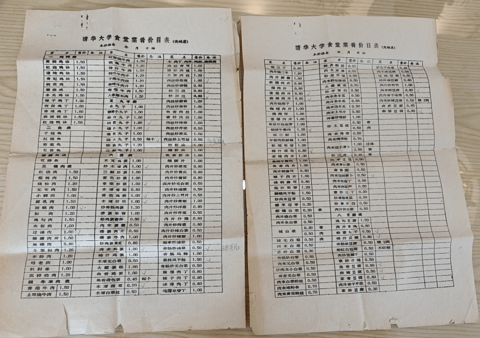 杨师傅从师父那里传承下来的“清华大学食堂菜肴价目表”。图/清华大学