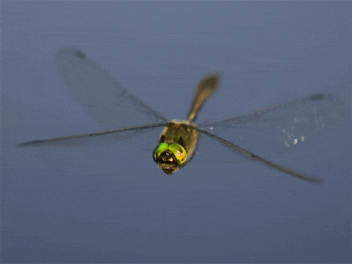 蜻蜓的飞行能力到底高超在哪里呢?首先就悬停。一般的飞行昆虫,比如蚊子、蜜蜂也可以悬停,但都会“晃动”,得靠不停调整翅膀来勉强维持平衡,而蜻蜓的悬停就像是“钉”在空中一样,几乎没有任何“晃动”,即使在有风的情况下,只要风不是太大,它们也可以保持惊人的稳定。
