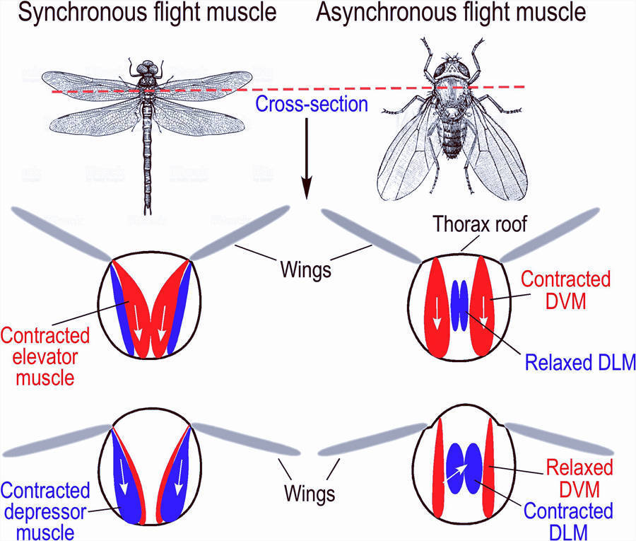 要理解蜻蜓的飞行,我们得先从它的“硬件”——翅膀和肌肉说起。在昆虫世界里,飞行肌的驱动方式大概可以分成两种。