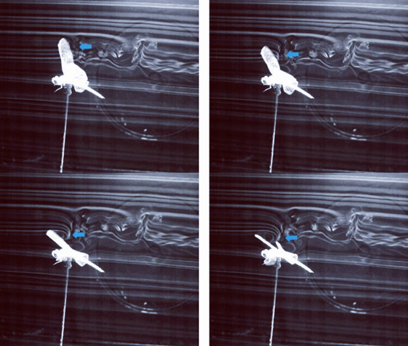 蜻蜓是如何感知,又是如何计算并做出反应的?这其中的秘密,科学家至今仍未完全搞清楚,尽管超级计算机可以模拟出某一瞬间的流场,但要完整模拟蜻蜓在复杂机动中,其翅膀与瞬息万变的流场之间的全部互动,依然是一个难以解决的问题。