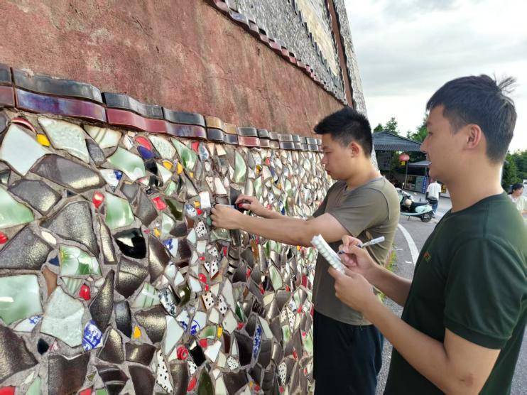 在浮梁县新平瓷宫——这座由万千瓷片构筑的“陶瓷宫殿”前,队员们列队整齐,目光中满是对这座“陶瓷宫殿” 的敬畏。实践队用“观察—分析—总结”的系统思维梳理瓷宫历史价值,记录瓷片纹样时代特征、分析拼接工艺难点、采访瓷宫建造者的后人、收集尚未被文字记载的建造故事。队员们结合部队装备保养经验,提出创新性保护方案,如设计便于更换的瓷片固定装置、推荐耐候性防护涂层,并制作《瓷宫日常巡查手册》,协助建立常态化保护流程,以青春智慧守护景德镇这座独特的文化地标。