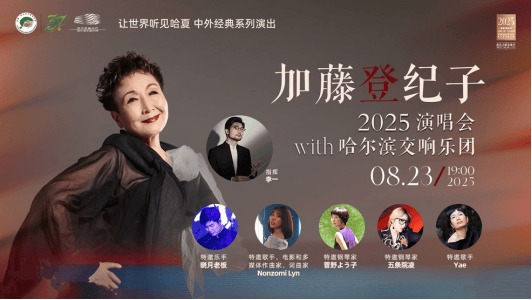 今年是中国人民抗日战争暨世界反法西斯战争胜利 80 周年。加藤登纪子决定回哈尔滨举办专场音乐会,特邀两个人一起主唱,一人是她的二女儿、著名歌手Yea,另一位是精通日、中、英三种语言年仅 24 岁的歌手Nozomi Lyn。