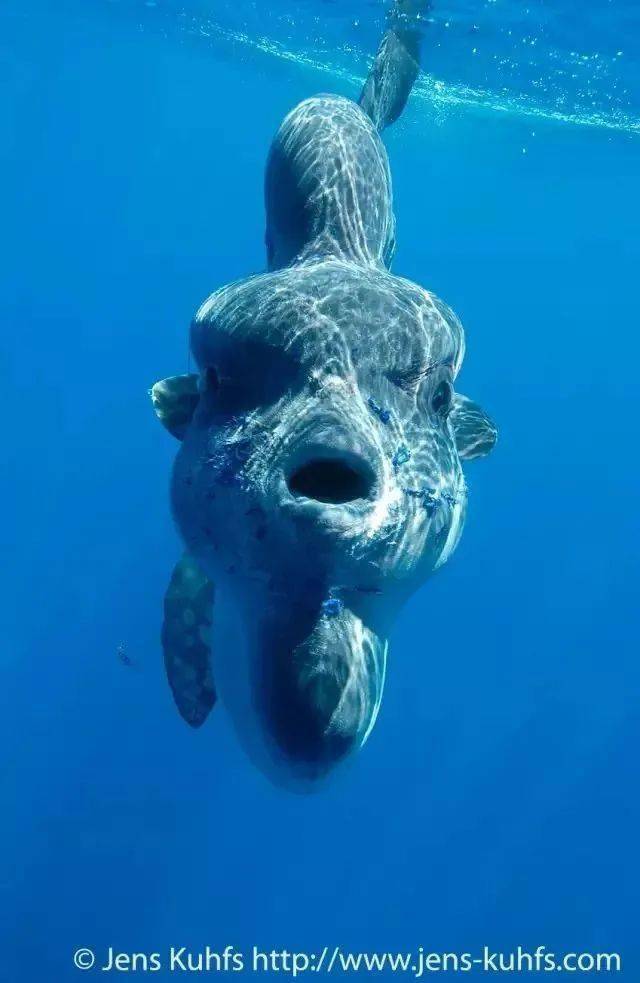 翻车鲀平均体长约为1.8米,平均体重超过1吨,而最大的标本记录体长为3.1米,两鳍跨度4.2米,体重更是达到了惊人的2.3吨——这使得翻车鲀成为了现存最重的硬骨鱼类。