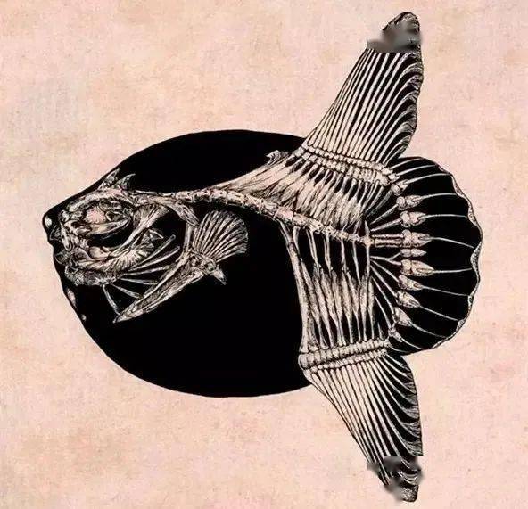 虽然属于硬骨鱼,但翻车鲀的骨骼中软骨组织的比例很高,它们的骨骼极度特化,尾鳍退化消失,取而代之的是背鳍和部分臀鳍形成的“舵鳍”。它们的肋骨也完全消失,使翻车鲀无法像它的鲀类亲戚一样鼓气。尽管翻车鲀身形庞大,但其骨骼却相对较轻,这也让它们能肆无忌惮长得硕大。