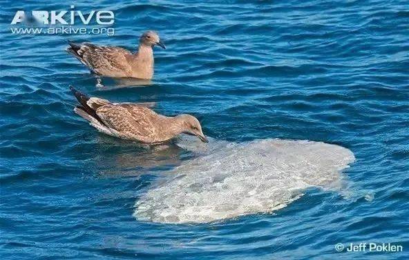 海鸥在啄食翻车鲀体表的寄生虫 | Jeff Poklen