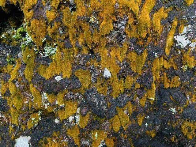 图中浅色部分为地衣(图片来源:作者拍摄)