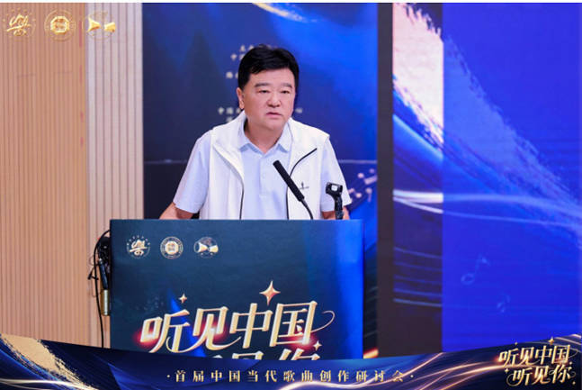 韩新安介绍“听见中国听见你”工程的相关工作情况。他表示,该工程由年度歌曲征集、高级词曲创作研修班和优秀作品展示等环节构成,旨在推动优秀原创歌曲的创作与传播。他指出,当前在AI制作、艺术评价体系和市场运作方面仍存在提升空间,期望未来与更多专业机构何团队深化合作,共同推动中国原创音乐实现高质量繁荣发展。
