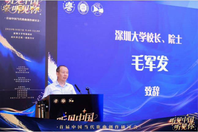 毛军发在致辞中表示,在建设文化强国的背景下,中国歌曲作为文化载体,承担着推动全球文明对话的重要使命。深圳大学作为特区高校,此次依托人文学科底蕴承办研讨会,正是为了构筑一个贯通学术与实践、联结城市与高校的高端平台,旨在聚焦中国音乐的美学重构、教育赋能与全球传播,驱动其实现创造性转化与创新性发展。