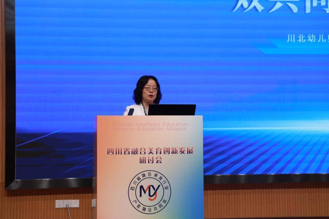 北京彩蝶舞蹈教育科技有限公司绘本舞蹈创始人、全国融合美育行业产教融合共同体理事长王红丽作为牵头企业代表,分享了绘本舞蹈的融合美育实践。她表示,共同体将围绕四川“双强省”目标,整合资源建好生态链,推动美育与数字技术、非遗活化、文旅融合等领域的跨界创新。