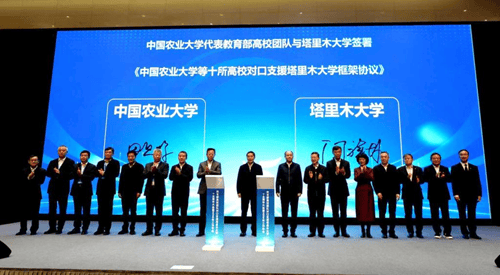 中国农业大学代表教育部高校团队与塔里木大学签订了对口支援框架协议。塔里木大学与中国农业大学、浙江大学、华中农业大学、北京化工大学、东华大学签订了新一轮对口支援协议书。