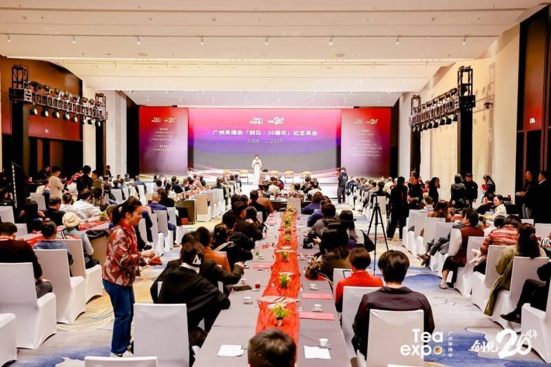 2025广州茶博会首日下午,“创见・20 周年”纪念茶会在广交会堂二楼一号会议室举办,200多位茶品牌企业掌舵人、行业协会领导、专家学者及展会二十年参与者、亲历者、见证者齐聚一堂,共话茶产业发展脉络。茶会现场不仅回顾了广州茶博会从初创到成为中国最具价值、创新力和国内外影响力的茶博会的成长历程,更通过嘉宾访谈的形式来复盘展现中国茶产业的跨越式发展,一起见证中国茶实现从产业升级到文化自信的跨越。