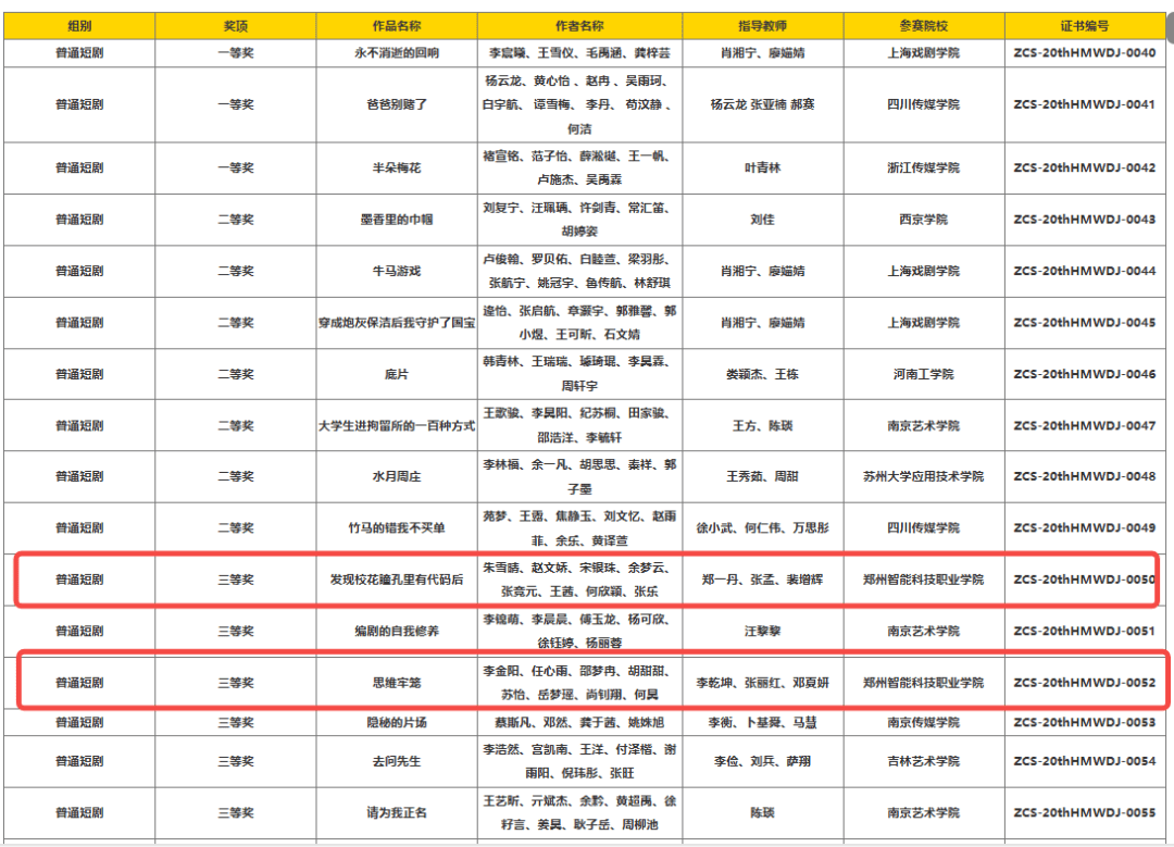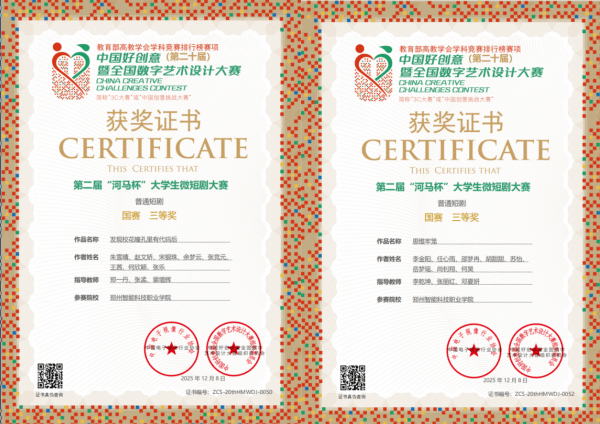 近日,第二十届中国好创意暨全国数字艺术设计大赛——第二届“河马杯”大学生微短剧大赛评选结果正式揭晓。我校传媒学院融媒体技术与运营专业学生在普通微短剧组别中脱颖而出,斩获国家级三等奖两项。
